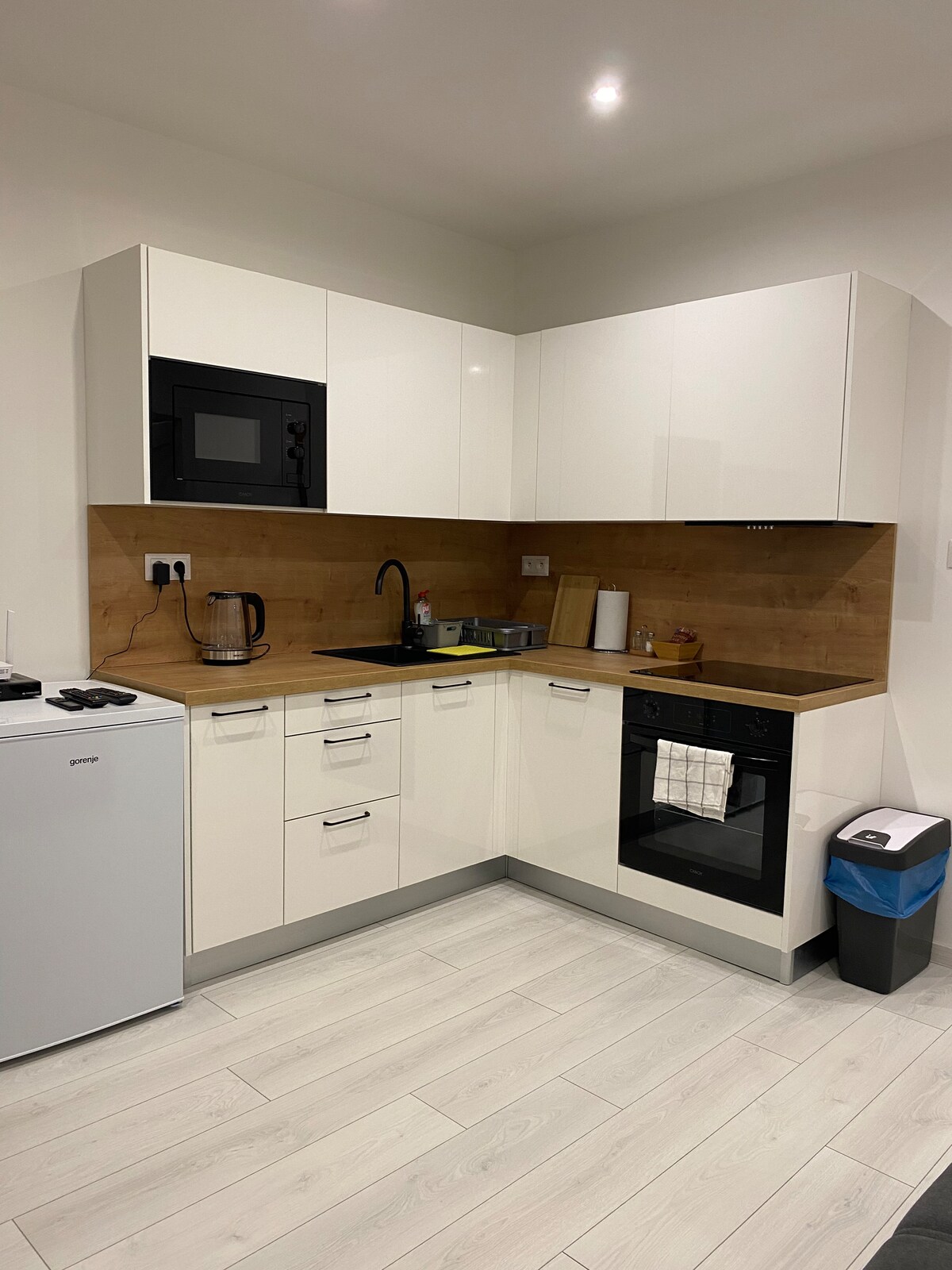 30 m², najviši sprat (7.) sa liftom. 1 km od centra grada. 100 m od prodavnice, autobusa, paba. 200 m od bazena. Besplatan parking. Dnevna soba: krevet za jednu odraslu osobu + ugaona sofa na razvlačenje (za dete), klima-uređaj, smart TV, brz Wi-Fi, garderober. Kuhinja: kompletno opremljena – plinski i električni šporet, mikrotalasna pećnica, kuvalo za vodu, toster, aparat za kafu, mašina za pranje veša, trpezarijski sto, kauč na razvlačenje (za jednu odraslu osobu). Kupatilo: tuš, umivaonik, WC, fen za kosu, pegla i daska za peglanje, usisivač, komplet za prvu pomoć. Mali stan, velika sloboda: kuvajte, odmarajte, opustite se – a onda prošetajte preko granice.