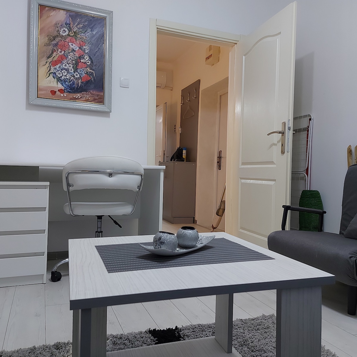 Small apartment of 25m2 with spacious bathroom, a kitchen that is part of the living room. It is equipped with the necessary devices for shorter and longer stay. The bright and open space gives the impression of a larger space, modern interior design that is simple. The apartment is located in a residential building, near the city center, bus and railway station, river, market ... and all this is at a distance of 10 to 15 minutes walk. For any additional information you can contact me by e-mail.