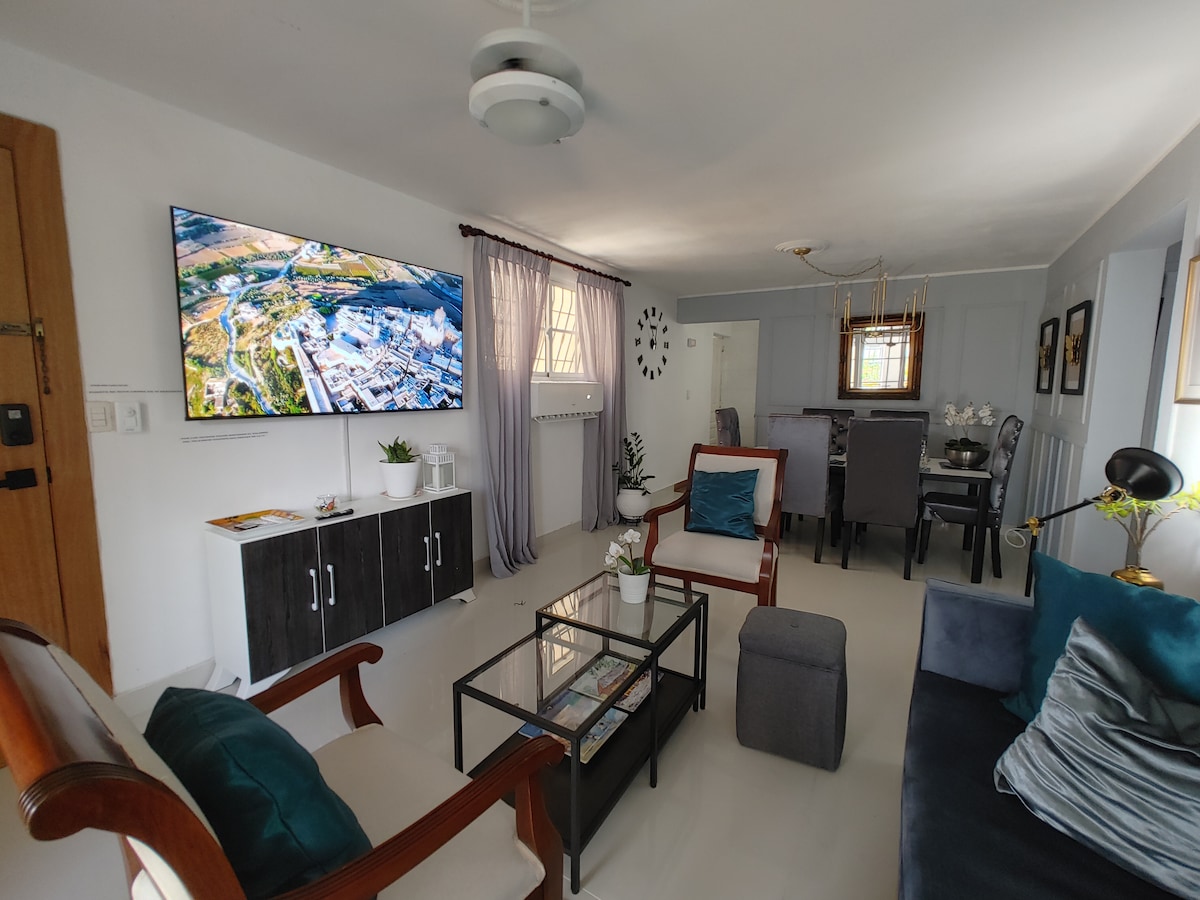 Udoban stan, prvi sprat. Diskretan i intiman. Apartamentoplementto 2 kupatila Trpezarija Kuhinja TERASA SA PRIVATNIM ĐAKUZIJEM. Dobro pozicioniran u blizini tržnih centara kao što su: Plaza Duarte-Carrefour, Pricesmart, Bravo Supermarket, Plaza Lama, La Sirena. Sve u roku od 12 minuta. *Đakuzi se automatski isključuje nakon 3 sata *Roštilj: mogu postojati dodatni troškovi *Ovaj stan se nalazi između Don Honorio i Kondada.