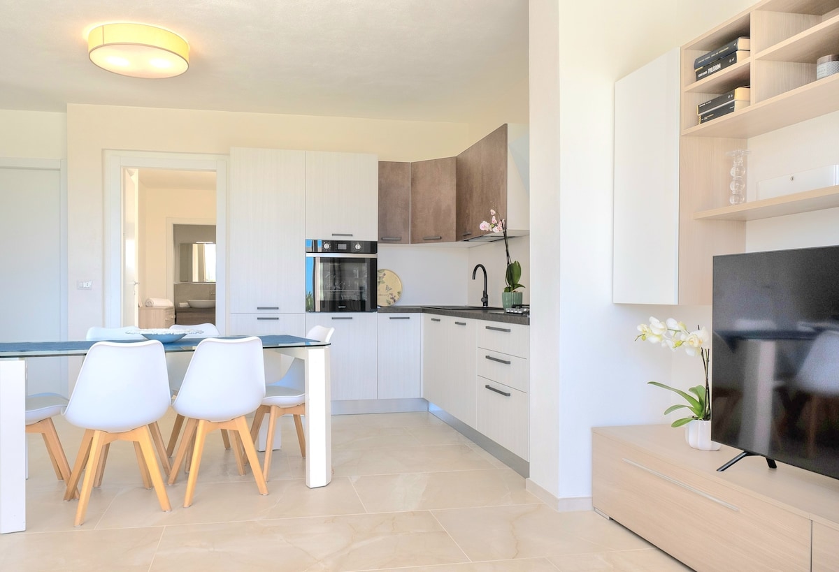 New apartment with private porch and a splendid view of the garden. A double bedroom with wardrobe, main bathroom with double shower, toilet, large living area with kitchenette. Design furnishings with a few touches of Sardinian furniture and craftsmanship. The residence is surrounded by greenery just 10 minutes from the city center, close to the main services and beaches, but at the same time away from traffic and noise.
