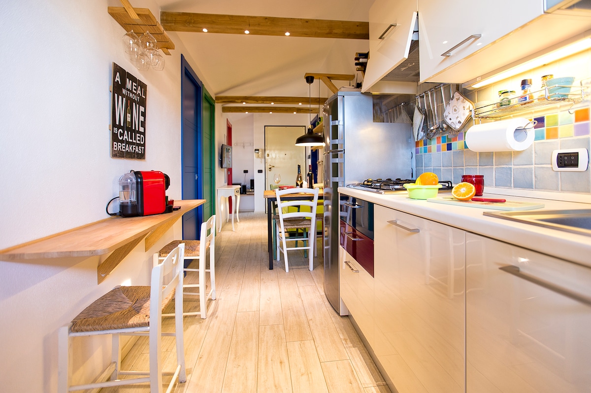 Casa Melograno is a three-story house with a charming small garden. The ground floor features a spacious kitchen, while the first floor includes a living room (which can also serve as a bedroom) and a bathroom. The bedroom on the second floor is accessible by a ladder. Casa Melograno has been tastefully renovated by us. Please note, it is not suitable for young children under 6 years old due to the lack of a banister on the stairs and the ladder leading to the top-floor bedroom.