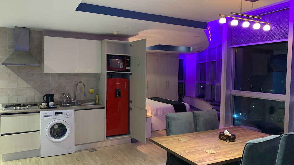 Moderan jednosoban stan u bezbednoj Diplomatskoj enklavi. Uživajte u spavaćoj sobi sa pripadajućim kupatilom, dnevnom prostoru sa toaletom, odvojenoj trpezariji, potpuno opremljenoj kuhinji i tihom kutku za rad. Kafić Loafology i restoran Sync udaljeni su samo 30 metara Savršeno, praktično smešteno na 10 minuta hoda od Ambasade SAD. • Biće obezbeđena pomoć pri ulasku u diplomatsku enklavu • Ako nemate automobil za ulazak, razgovarajte sa mnom jer aplikacije za prevoz kao što su InDrive, Careem, Uber itd. nisu dozvoljene za ulazak