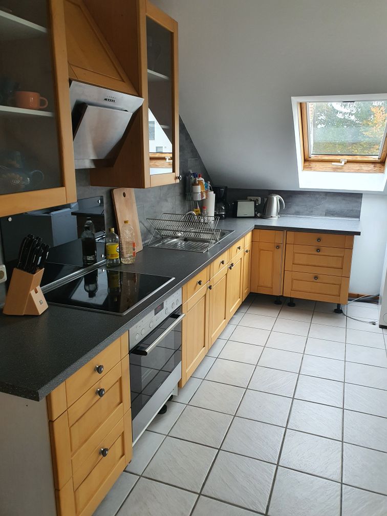 Gemütliche DG-FeWo in idyllischer Lage, kombiniertes Wohn-Schlafzimmer mit Ausziehcouch für Kind(er), voll ausgestattete Küche, eigene Sitzgelegenheit im weitläufigen Garten. Im geräumigen Badezimmer mit Dusche und WC, befinden sich noch eine Waschmaschine sowie ein Trockner. Die Couch im Wohn-Schlafzimmer bietet eine Schlafgelegenheit für zwei Kinder (bis 8 Jahre kostenfrei). Für Fahrräder steht eine Fahrradgarage zur Verfügung.