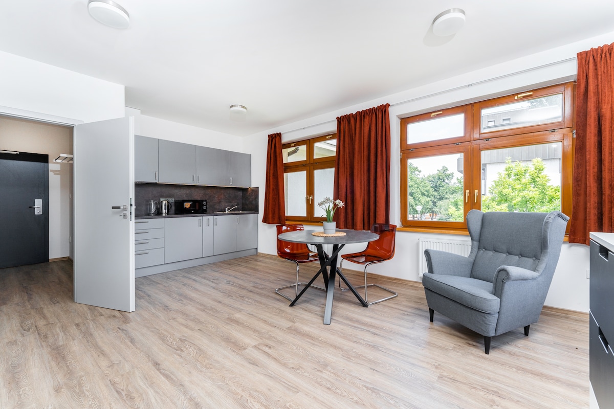Stan je odličan izbor za one koji traže prijatan i udoban smeštaj u spa centru. Njegova jedinstvena karakteristika je pogodna lokacija, koja pruža jednostavan pristup svemu što Poděbrady ima da ponudi. Možete uživati u prelepom parku iz stana za opuštanje i zahvalnost u prirodi. Brojni očaravajući restorani i kafići su takođe u blizini. Ne propustite priliku da posjetite dvorac Poděbrady, udaljen samo nekoliko minuta hoda.