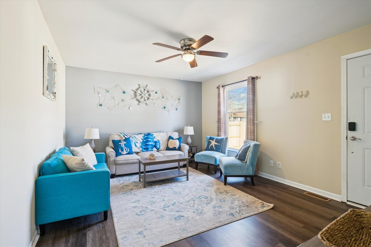Walk to a secluded beach or enjoy the grass and trees outside your suite. Private ground level unit with outside entrance in newer home. Homeowner lives in separate unit upstairs. One king bedroom, one queen bedroom plus a sofa that converts to a queen bed in the living room. Dorm fridge, microwave and Keurig. Quiet area close to all the fun Colonial Beach has to offer.