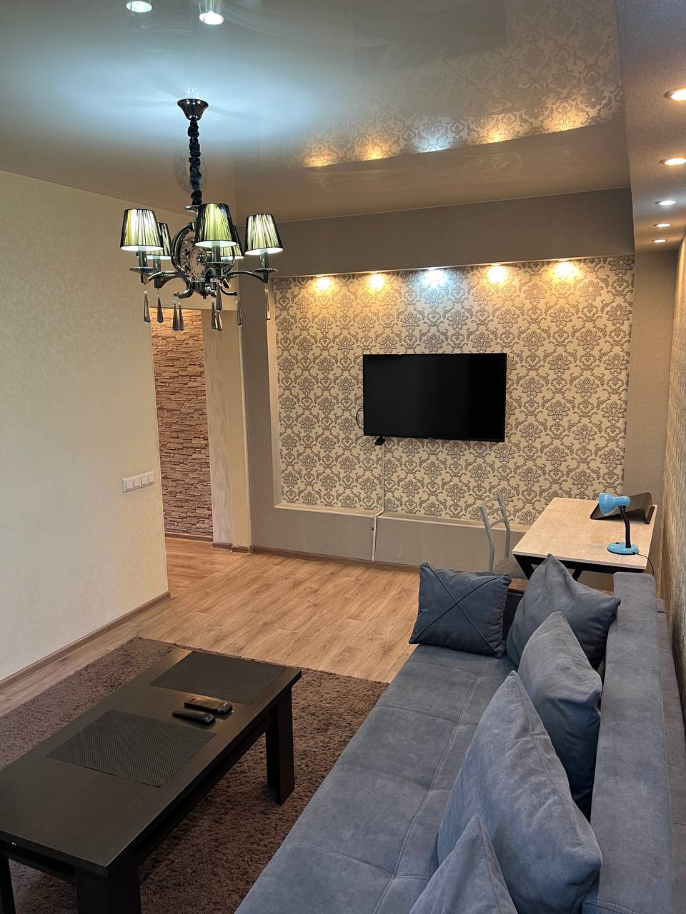 Smještaj u samom centru grada, sve što vam je potrebno nalazi se na pješačkoj udaljenosti. Postoje tri sobe, uključujući potpuno opremljenu kuhinju, dnevni boravak, 2 spavaće sobe, od kojih je jedna pogodna za kancelariju u kojoj možete da vodite radne pregovore. Tu su Eternet i Wi-Fi sa brzim internetom od 600 Mbps. 150 metara zapadno nalazi se velika prodavnica prehrambenih proizvoda „Narodnyi”, otvorena non-stop. Najbolja mjesta za šetnju, sportski klubovi, parkovi, tržni centri i atrakcije nalaze se u blizini objekta.
