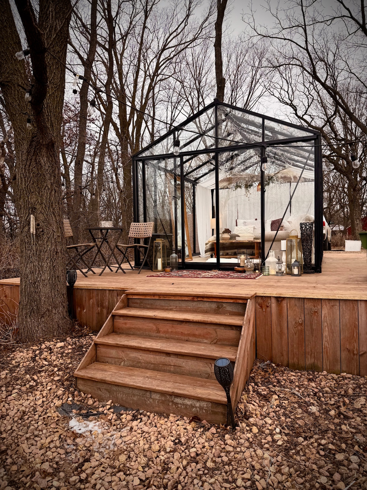 Ova staklena kuća ima mini split koji nudi i grijanje i klima-uređaj. Postoji nešto zaista čarobno u tome što je utočište u prirodi. Posmatranje prelepih pahuljica sa snježnih pahuljica oko zidova, pribavljenih pod grijanim ćebadima dok posmatraju zvezde. Kišne oluje imaju novo značenje, zalasci sunca i izlasci sunca postaju iskustvo koje mijenja život. Ovo je san fotografa, romantični odmor ili savršeno mesto da se ponovo povežete sa sobom. Privatna hidromasažna kada i ognjište.