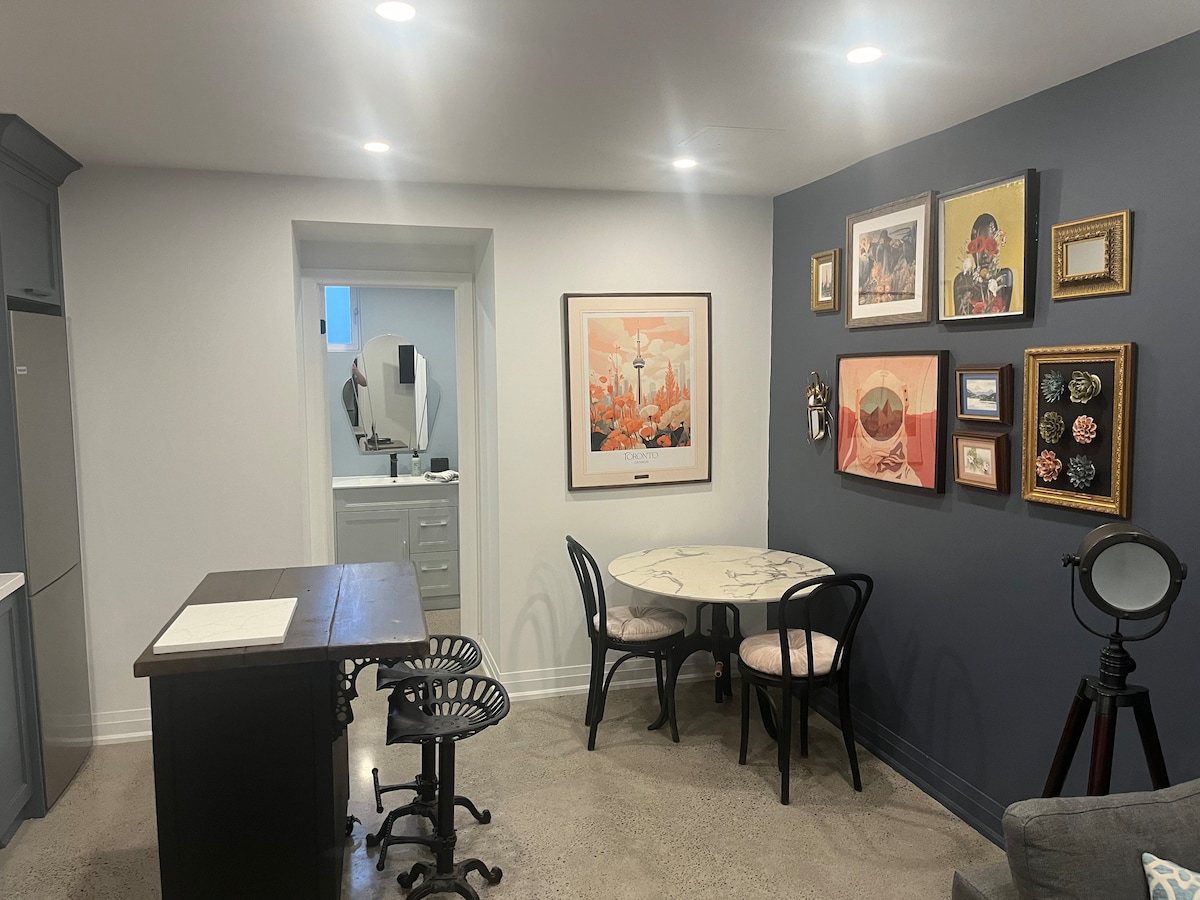 Nedavno renoviran, privatni apartman na nižem nivou (podrum) sa 1 spavaćom sobom i 1 kupatilom koji se nalazi u Aneksu Vest u Torontu, na samo 3 minuta hoda od metroa i autobusa. Svetao, tih i pažljivo dizajniran, ovaj samostalni prostor je idealan za samostalne putnike, parove ili kratke poslovne boravke. Uživajte u podnom grejanju, neograničenoj toploj vodi, brzom Wi-Fi mrežom, potpuno opremljenoj kuhinji i udobnom dnevnom boravku i trpezariji – na nekoliko koraka od restorana, parkova, prodavnica i prelepih stambenih ulica.