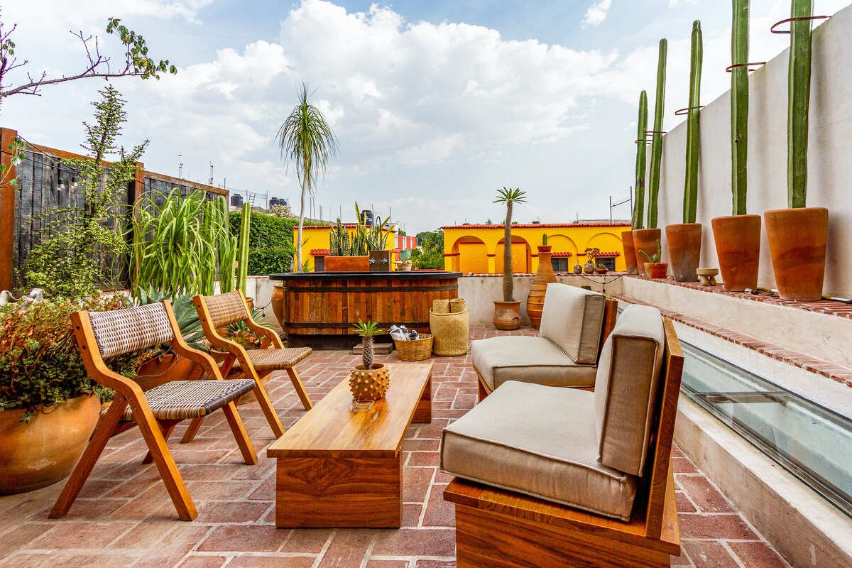 Descubre tu refugio en el corazón de Oaxaca. Casa Besos te ofrece lofts y villas con diseño vernáculo, a pasos del Templo de Santo Domingo, con la comodidad de un hotel boutique y el encanto auténtico de la ciudad. ¿Quieres relajarte? Disfruta de tu tina al aire libre bajo las estrellas. ¿Prefieres explorar? Todo el folklor, su gastronomía, arte y cultura están a unos pasos.” "NO OLVIDES VER MIS OTROS ALOJAMIENTOS BOUTIQUE EN MI PERFIL, ( LOFTS y VILLAS ) a pasos del templo de Santo Domingo".