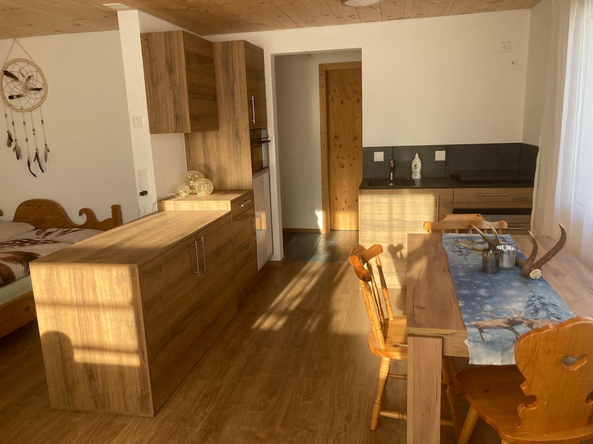 Entspanne dich in diesem einmaligen Rifugio. Im Jahre 2020 total sanierte 2 1/2- Zimmerwohnung, deren Interior Design komplett neu gestaltet wurde. Als Loft mit edelsten Materialien (Valser Granit, Schlossparkett, viel Altholz, freistehende Wanne, Eisenkamin auf zwei Seiten geöffnet, Designarmaturen) ausgebaut. Mit geschütztem Gartensitzplatz und Garten. Sonnige, ruhige Lage. Eigener Hauseingang, Sauna im Nebengebäude. Ski in, ski out oder Skibus in drei Minuten erreichbar.