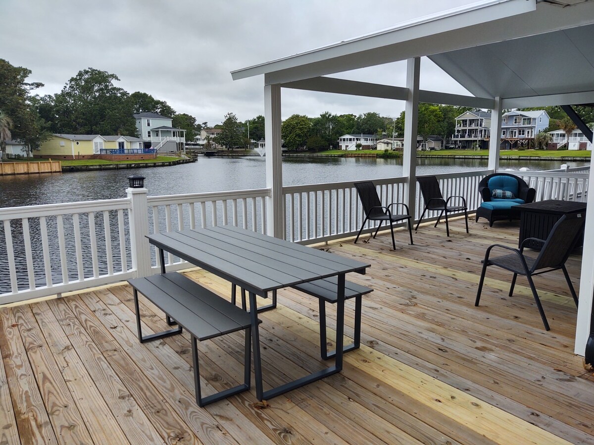Welcome to your Stylish Beach House in Ocean Lakes Family Campground. - Newly decorated interiors - Private elevator for easy access - Spacious living room with smart TV - Fast WiFi - Complimentary golf cart for guests 25+ - Water park, sports courts, heated pool, Lazy River - Linens included - Easy access to the beach - The house was clean and comfortable. - The location was on a quiet street. - Enjoy nearby attractions like Broadway at the Beach.
