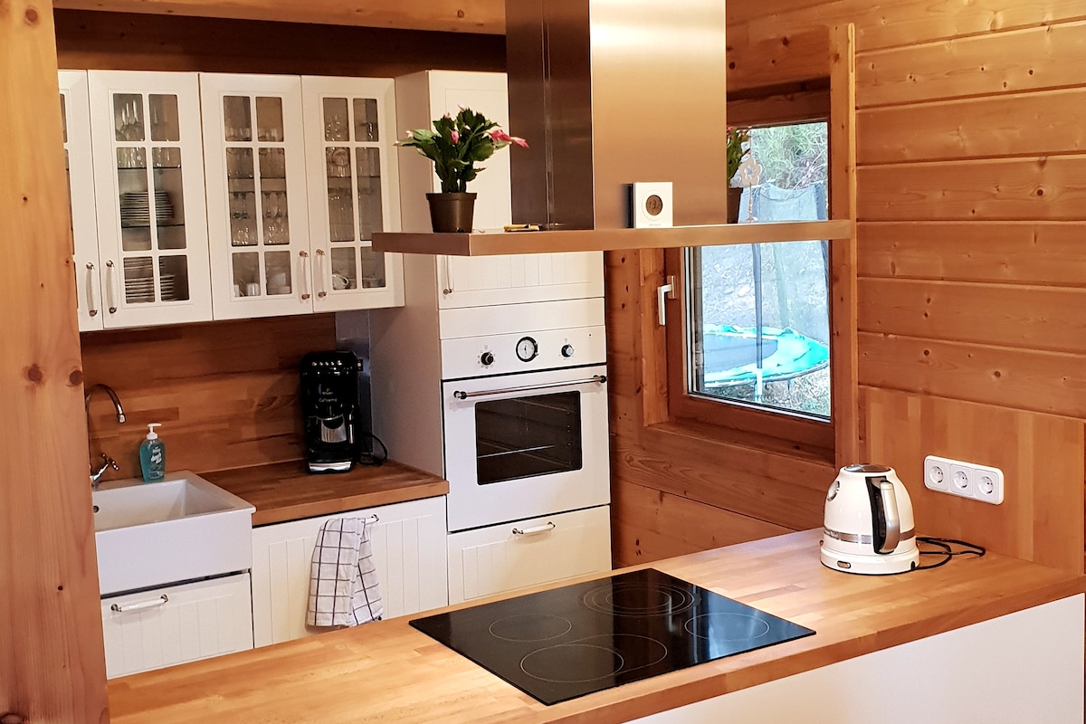Besucht uns in unserem neu renovierten Ferienhaus auf dem über 1000 m² großen Grundstück mit direkt angrenzendem Bachlauf, überdachtem Balkon und großem Gartenbereich! Das 50 qm große Holzhaus befindet sich in ruhiger Lage am Ortsrand und wurde mit viel Liebe zum Detail aus seinem Dornröschenschlaf erweckt. Unser kleiner Rückzugsort wurde innen und außen grundlegend renoviert und neu eingerichtet. Nehmt euch eine Auszeit und ladet euren Akku bei gemütlichen Abenden am Kaminofen wieder auf :-)