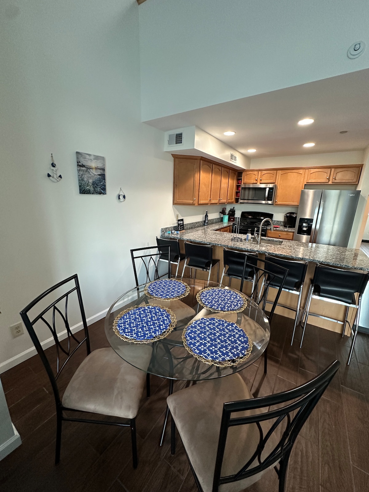 Srednjoročni boravci, nov–jun. Luksuzni i romantični apartman sa jednom spavaćom sobom i nautičkom tematikom. Uživajte u sopstvenom prostoru od 102 kvadratna metra u centru Preskota (1 blok od reke). Uz industrijski, moderan dizajn, ovaj prostor prikazuje jedinstvenu i prilagođenu umetnost, književnost i delimičan pogled na reku. NAPOMENA: Pristup jedinici je samo sa spoljašnjih stepenica. Ova jedinica je na 3. nivou i ne preporučuje se osobama koje imaju poteškoća sa stepenicama ili visinama.