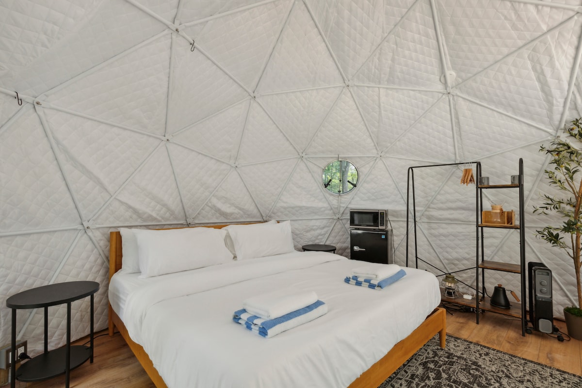 Kuća sa kupolom i velikim bračnim krevetom sa đakuzijem• Udoban glamping pored Flint Krika