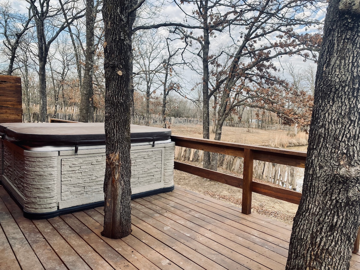 Ova slatka mala koliba nalazi se odmah iza naše glavne kuće. Dobijate svoj privatni prostor na zemljištu. Grejanje i vazduh su obavezni u Oklahomi, a mi brinemo o vama da biste se osećali prijatno tokom cele godine. Takođe imate pristup našem prelepom tuš-kabini na otvorenom i našem sjajnom kompostnom toaletu za zaista jedinstven doživljaj. U kolibi se nalazi mini frižider, mikrotalasna rerna, prelivena kafa, zajedno sa tanjirima, priborom za jelo i peškirima.