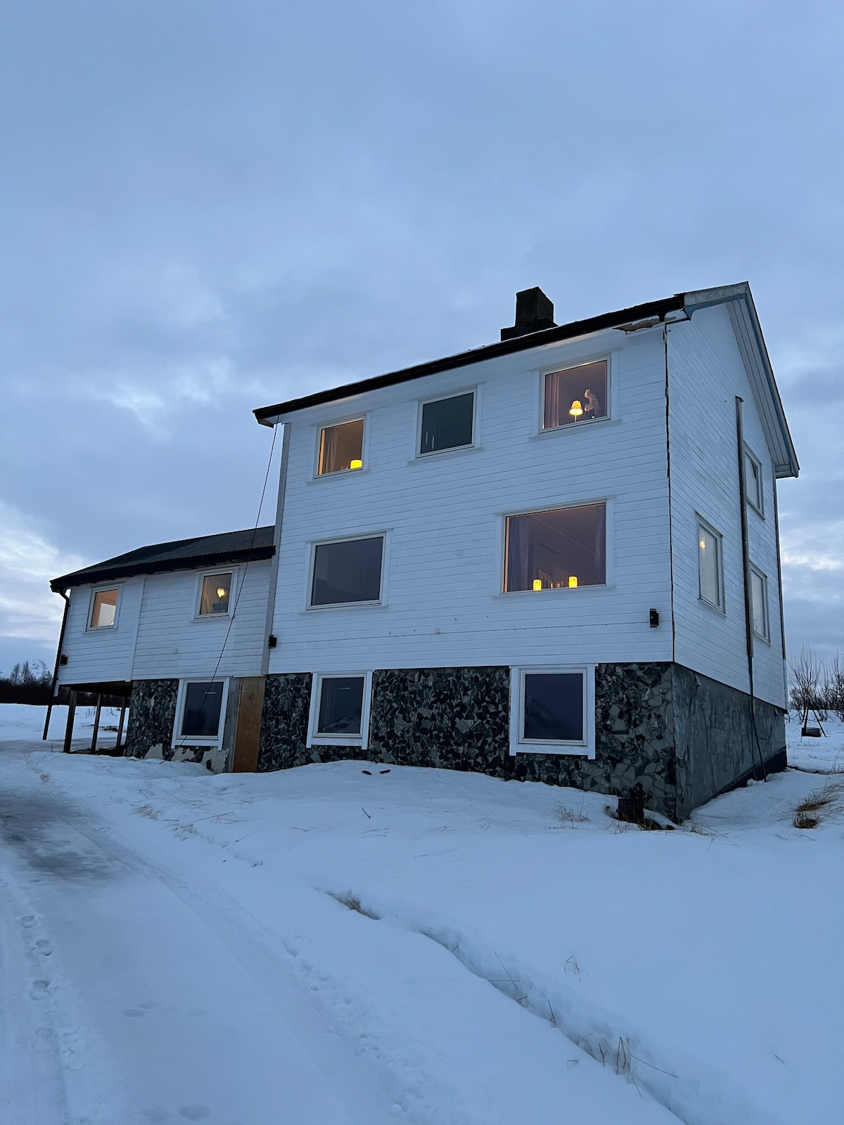 Potpuno renoviran 2019-2021 Da li ste fascinirani polarnom svjetlošću/ponoćnim suncem, ovo je pravo mjesto za vas Kuća se nalazi 5-6 minuta hoda od pristaništa za brze brodove i pristojnog pristupa Majru i prodavnici brzih brodova. Kuća ima otvoreno rješenje sa dnevnim boravkom, kuhinjom i trpezarijom, a na produžetku se nalaze hodnik i kupatilo. Potkrovlje sadrži 3 spavaće sobe sa prostorom za 2+2+3 Nedavno postavljen spoljni prostor sa prostorom za roštilj Plutajući oko stepenica Prijava nakon 16:00 je prijava ranije, mora se unaprijed dogovoriti i obično je u redu