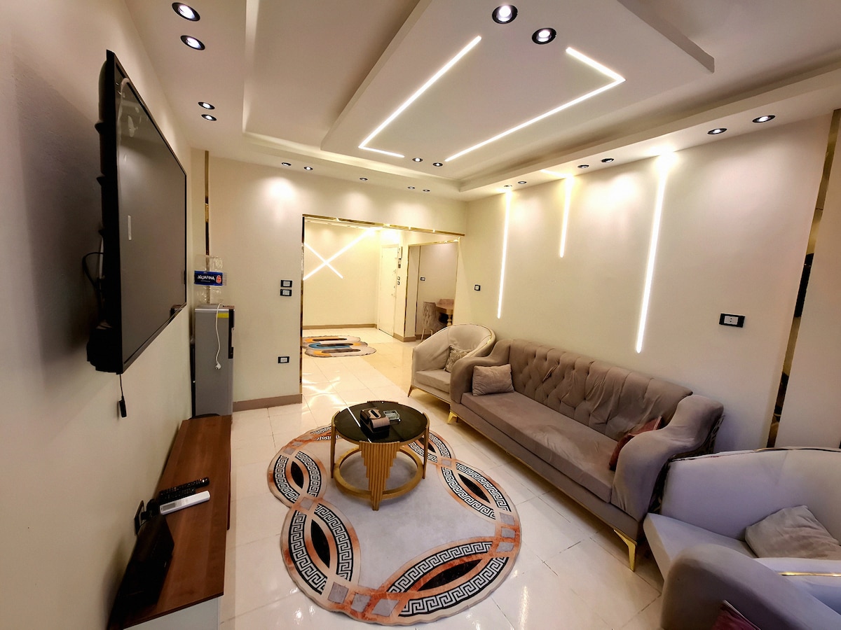 أعد التواصل مع أحبائك في هذا المسكن المناسب للعائلة شقة سوبر لوكس منطقة راقية هادية أمان جدا دور ٣ اسانسير غرفة نوم كبيرة و معاها كنبة كبيرة وريسبشن كبير. مطبخ امريكي وحمام