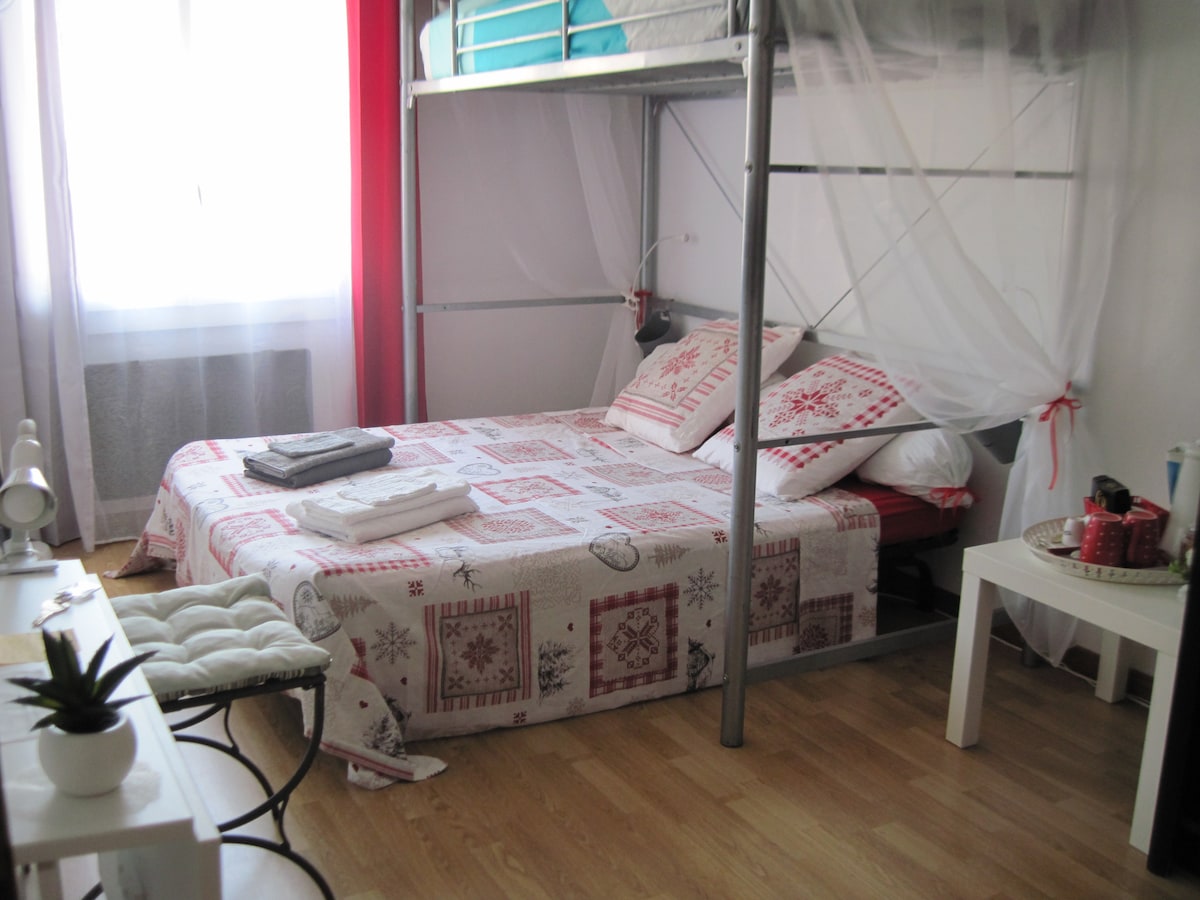 10 minuta od stare luke pješice 10 do 15 minuta od plaža pješice 19 m2 bez pogleda sa 3 vrlo svijetla velux u zavjesama okultnog krova, u blizini naše dame Vauban - TV - Wi-Fi Nezavisna spavaća soba sa kupatilom i privatnim WC-om Objekat u zgradi Posteljina je obezbijeđena, Mikrotalasni frižider, 1 indukciona ploča za kuvanje, kafić, električni čajnik. Posteljina 140x190 sa nadmadracem Lift do 5. Vrlo tiho na posljednjem škripcu Reverzibilna klima Plaket. Prodavnice (MONOPRIX) na bulevaru.
