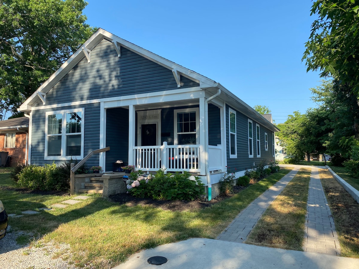 Umjetnost i knjiga su ispunjeni. Nalazi se u Blumingtonu u Indijani. Moj bungalov iz 1920-ih obuhvata dve spavaće sobe za goste sa bračnim krevetima, donje jastuke, jastuke od perja/donjeg jastuka, linijske zavese i privatno kupatilo. Prostor za goste uključuje i baštenski trijem, privatni ulaz, dnevnu sobu i trpezariju sa mikrotalasnom rernom, malim frižiderom i ručno rađenim javorovim stolom. Nema KUHINJE. Kupatilo se nalazi između spavaćih soba i uključuje Toto bide i EO toaletne potrepštine.