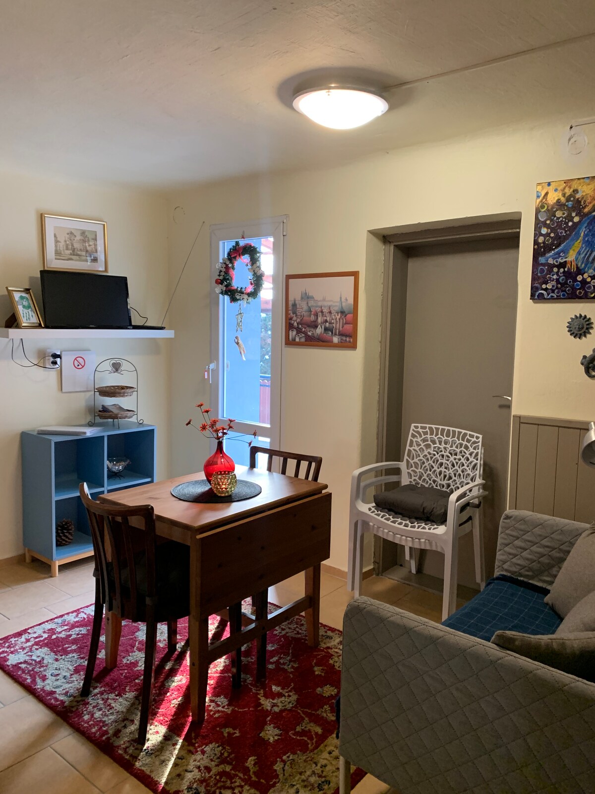 Novi luksuzni dupleks stan 12 sa novom velikom terasom, pogledom na Olomouc i masažnom kadom. Stan se nalazi nedaleko od centra, odmah pored parka Flora. Stanica javnog prevoza Wolkerova i Penny market 100 m. Na donjem spratu se nalazi kupatilo sa masažnom kadom, dnevni boravak sa kuhinjom . Na drugom spratu se nalazi udobna spavaća soba sa električnim kaminom. Nedostatak je 5. sprat bez lifta.