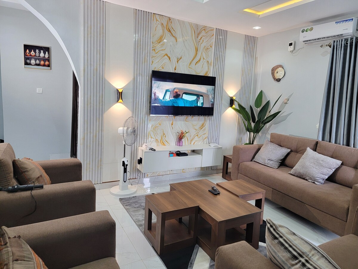 Dovedite cijelu porodicu u ovo sjajno mjesto sa mnogo prostora za zabavu. dobro osigurano imanje, centralizovano, vrlo blizu tržnog centra i bioskopa, sat vremena od međunarodnog aerodroma Muritala Lagos, pripravnosti za solarnu energiju, Wi-Fi, DSTV, besplatan parking itd.