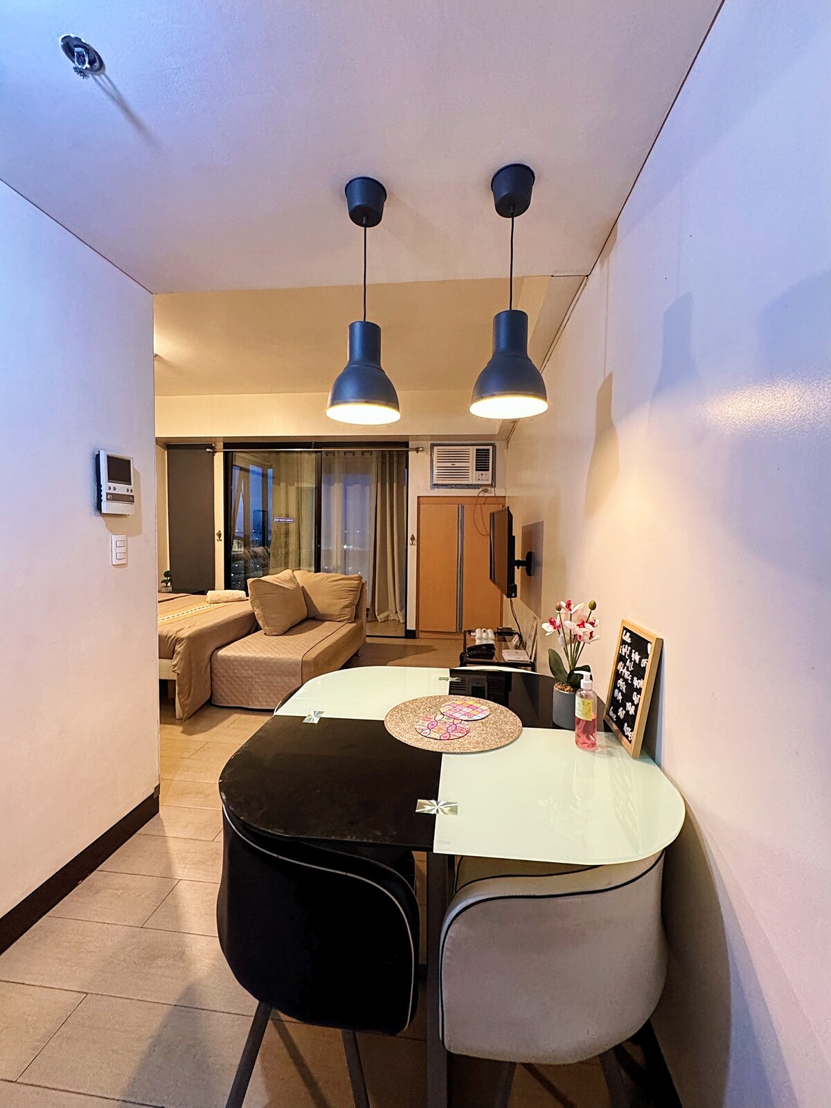 ✨ Modern studio near NAIA T3 ✈️ Cozy queen bed, WiFi, Smart TV & kitchen. Walk to airport, cafés & shops - perfect for layovers or city stays! 📍 • 🕒 Check-in: from 3:00 PM • 🕒 Check-out: by 12:00 PM Early check-in or late check-out may be available upon request, subject to availability, at a rate of $5 per additional hour.