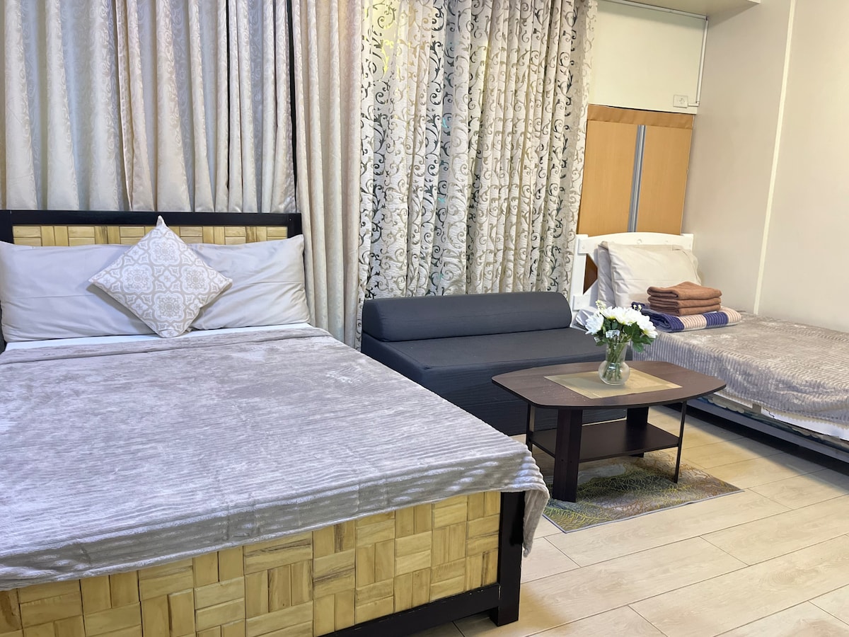 Odsjednite u ovoj udobnoj jednosobnoj jedinici na samo 5 minuta hoda do NAIA terminala 3 putem pista Manile. Uživajte u besplatnom pristupu bazenu, brzom Wi-Fi-ju, Smart TV-u i potpuno opremljenoj kuhinji. Jedinica ima 2 klima-uređaja tipa prozora za hladan i opuštajući boravak. Smješten u blizini odmarališta World Manila, restorana i tržnih centara, savršen je za odmor, poslovna putovanja ili odmor.