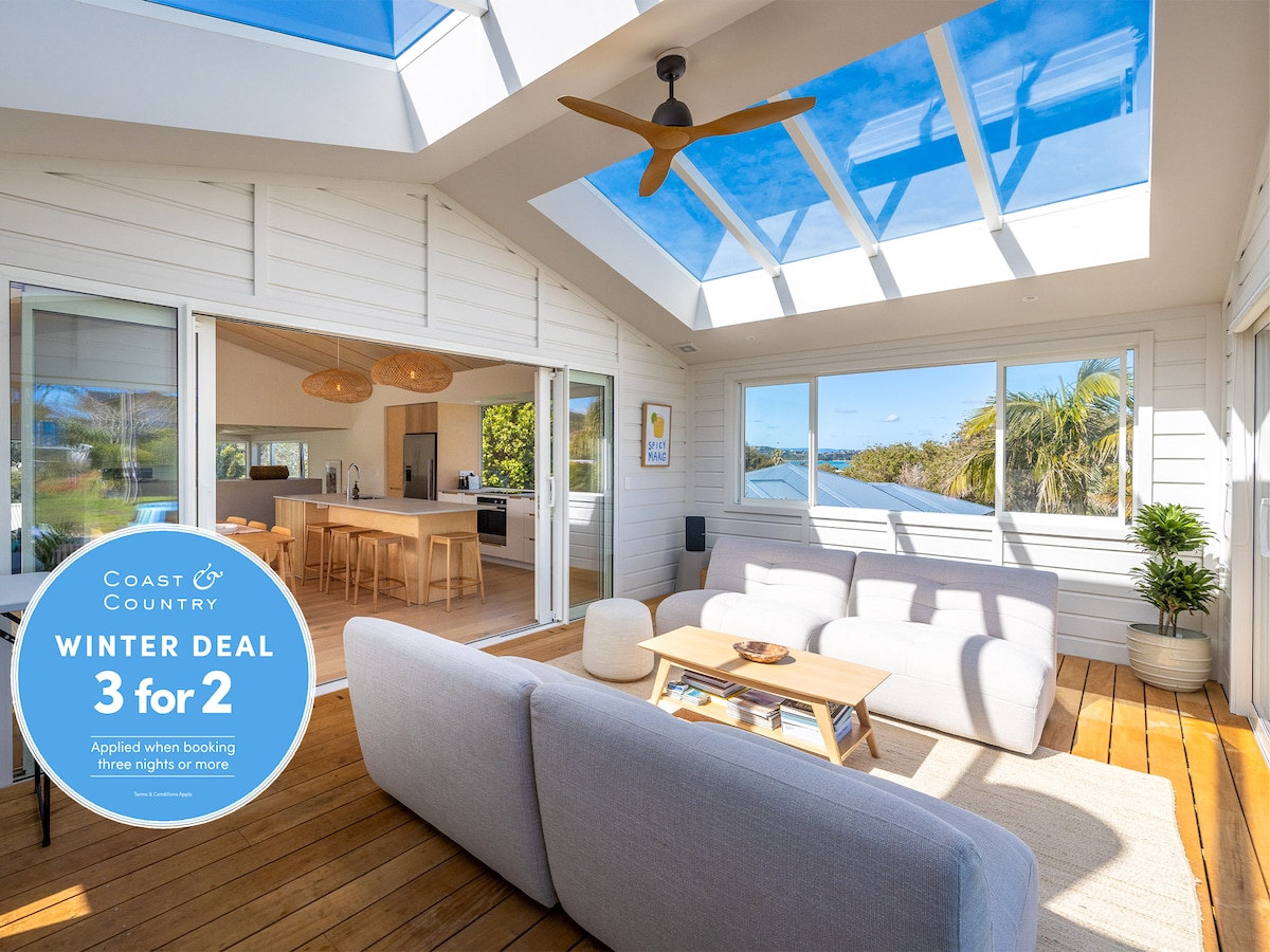 ** WINTER DEAL - Stay 3 or more nights and get a night free for stays taken between 1 May and 30 September 2026 (excluding holiday weekends)** Located on the uphill side of Little Oneroa, this private north facing, beach bach makes for super easy living and is a perfect Island escape. Spilling out onto a sunny north-facing deck, open plan living opens to lovely sea views across the Bay.