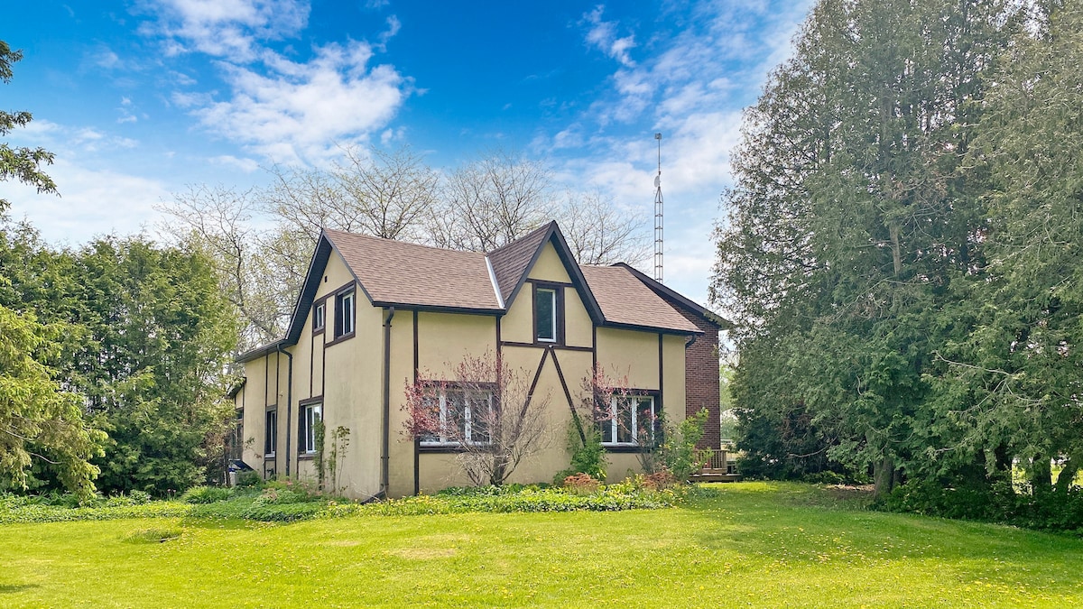 Predivno obnovljena seoska kuća s omotanim trijemom. Svetli, otvoreni koncept sa pristupom punoj gurmanskoj kuhinji, dnevnoj sobi, 80 hektara seoskog okruženja, sa ognjištem i roštiljem na mirnoj terasi za sunčanje. Ovaj prostrani dom je odlično mjesto za porodična okupljanja, odmor, odmor, svadbene tuševe, događaje za male prijatelje. (Iznajmljivanje ambara je dostupno kao opcija). Do plaže Grand Bend ima svega 15 minuta vožnje, a možete i da uživate u našem riječnom pročelju, jezercima i 4 km staza u karolinskoj šumi.