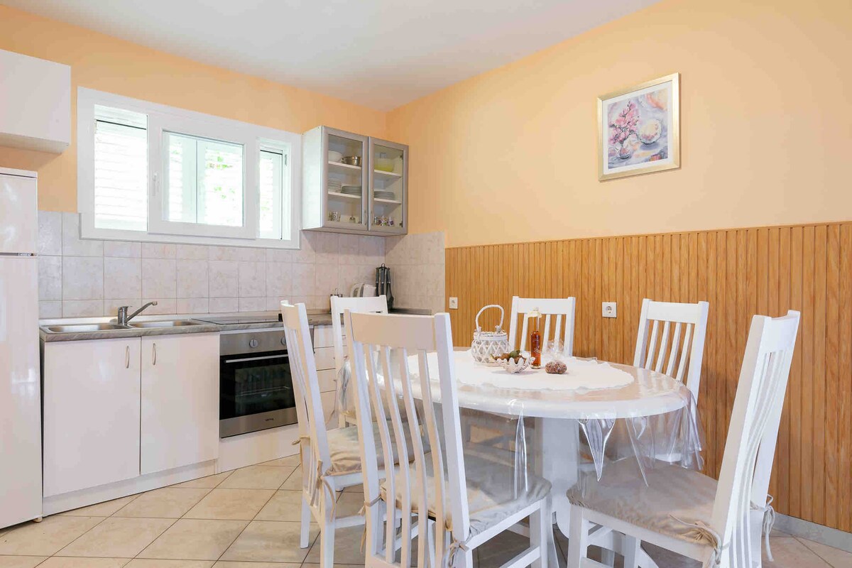 Entspann dich in dieser besonderen und ruhigen Unterkunft. Für einen romantischen unvergesslichen Urlaub zu zweit an der Adria Die Ferienwohnung "Romantik" (50 m2) befindet sich in einem Haus mit mehreren Wohneinheiten. Sie hat ein Schlafzimmer, einen Essbereich mit Küchenzeile und ein Badezimmer mit Dusche. Das Highlight ist die Sonnenterasse (18 m2) mit Blick auf das Meer. Die Wohnung verfügt über WLAN. Über das Grundstück sind es nur wenige Schritte zum eigenen Meerzugang.
