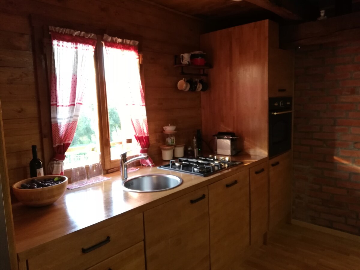 Opustite se u harmoniji sa prirodom! Ova drvena kuća, u kojoj može da boravi 9 ljudi, nudi spokoj i sklad, u kombinaciji sa gurmanskim specijalitetima i odličnim lokalnim vinima. Pobjednička Formula! Vlasnik je izgradio kuću i pazio je da bude što ekološki prihvatljivija. Savršena je mešavina tradicionalnog i savremenog dizajna. U prizemlju se nalazi prostrani dnevni boravak otvorenog plana sa dva udobna kauča, foteljom i televizorom sa ravnim ekranom, pored velikog, tradicionalnog šporeta na drva.