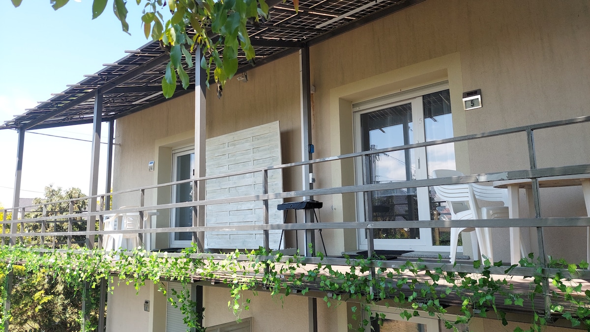 Privatna kuća u mirnom stambenom području sa terasom, baštom i balkonom. Nalazi se u blizini aerodroma i vrlo je blizu novog stadiona. Kuća je opremljena svime što vam je potrebno - ovo je naša porodična kuća, tako da ima svu potrebnu opremu kao što su mašina za pranje veša, mašina za sušenje veša, mašina za pranje sudova, mikrotalasna rerna i tako dalje. Možete i da se povežete sa našim zvučnim sistemom na Airplay-u i koristite projektor.
