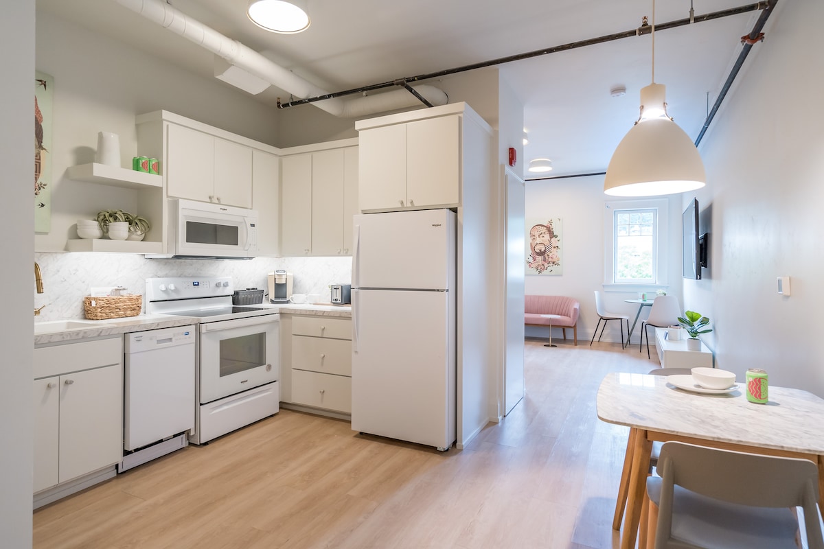 Jednostavan stil i prigušeni pastelni detalji nude sofisticiranost i jednostavnost. Potpuno restaurirana stambena zgrada iz 1910. godine. Udoban prostor u potkrovlju sa svim detaljima. Savršena kuhinja za spremanje celog obroka. Smart 65" TV u dnevnom boravku/prostoru za spavanje je spreman za strimovanje. Vest Elm je bio kauč luksuznom posteljinom i peškirima u Bruklinenu. Osnovna oprema za kupanje u javnoj opremi. Trpezarijski sto za dvoje, kao i namenski radni prostor sa brzim Wi-Fi mrežom. Klima-uređaj/grijanje sa digitalnim termostatom.