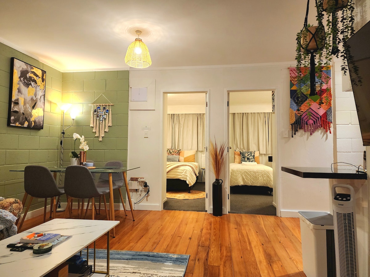 Novi stan, luksuzan i udoban, savršeno smješten u srcu Velington Sitija. Sa 2 spavaće sobe. Potpuno opremljena kuhinja, salon otvorenog plana, trpezarija, balkon i zajednička praonica veša. Ovaj stan je savršen za porodice, turiste, poslovne putnike i sve između. Uključena je neograničena brza Wi-Fi mreža (do 300 Mbps niže/100 Mbps više). 65-inčni pametni TV sa standardnim NZ kanalima. Ovaj stan dijeli ulaz i vešeraj sa zasebnim Airbnb studio apartmanom.