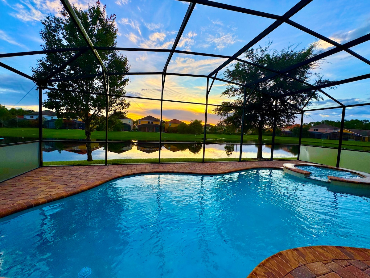 Waterfront LUX Disney Villa Sleeps24•Pool•Spa•GmRm