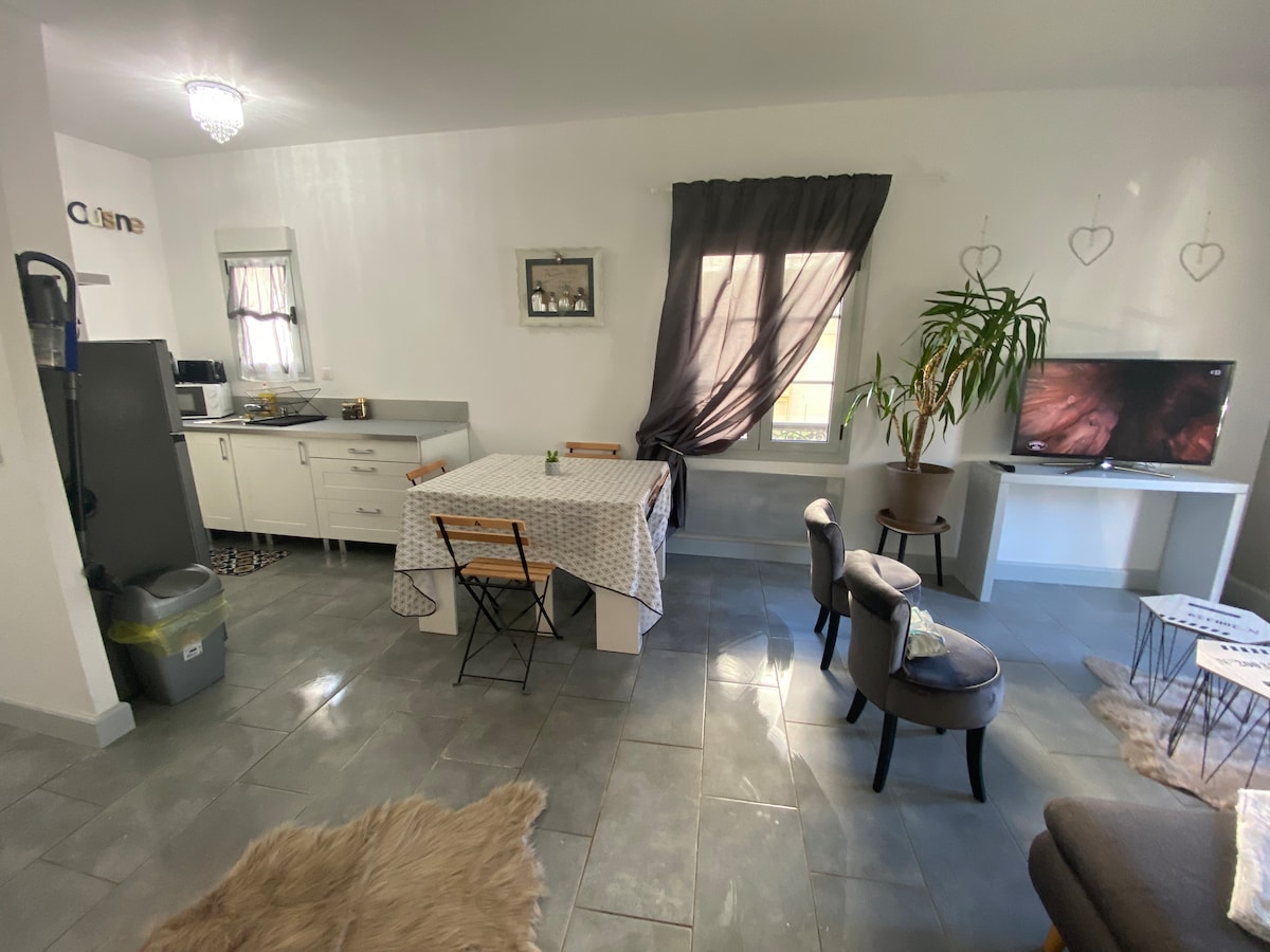 Prekrasan potpuno renoviran stan u veoma mirnom području sa malom terasom na nivou bašte samostojeće kuće. Njegova lokacija će vam omogućiti da otkrijete obale Loireta, da lako odete do kompleksa CO 'Met/ZENITH i centra grada Orleansa. Bićete na 5 minuta hoda od svih prodavnica (prodavnica, pekara, mesnica, kafić i restoran). Besplatan parking ispred kuće.