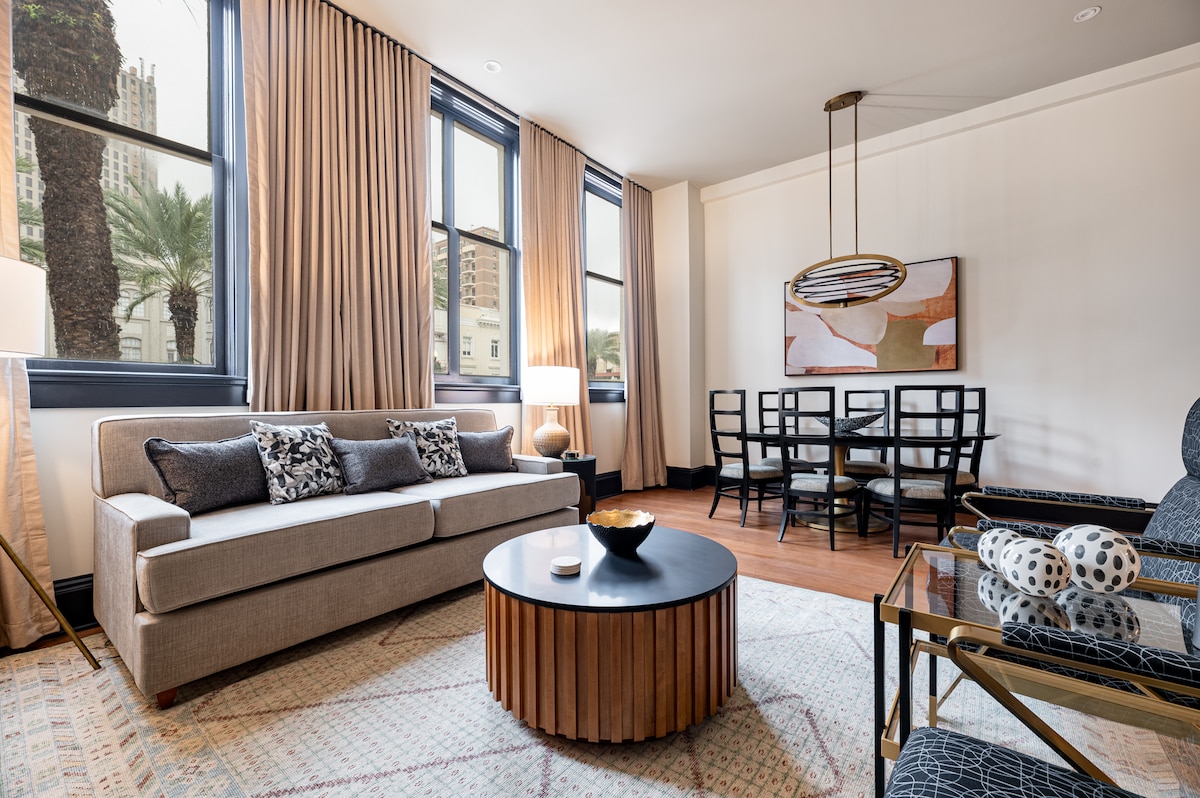 Experience New Orleans charm at The Gisele: a vibrant boutique apart-hotel with stylish suites, set in a beautifully renovated historic building with exposed brick, high-end finishes, and bold design. This 4BR/4BA features king beds and a relaxing living/kitchen/dining space. A shared pool + turfed garden w/ sun loungers and outdoor seating hang areas, plus elevator + stepless access, fast Wi-Fi, and free available street parking. Streetcar on the corner—easy to Downtown & the French Quarter.