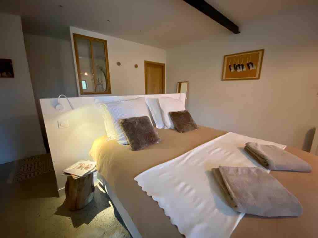 Seoska kuća od 60 metara renovirana iz 1769. godine. Na selu bez komšija u šumovitom parku od 3000 m² sa foteljom i prostorom za opuštanje, unutrašnjim bazenom grijanim tokom cijele godine, SPA CENTROM sa saunom, balneoterapijskom kadom, profesionalnom masažom fotelja ili masažom sa našim partnerom Žerom po dogovoru. Doručak sa lokalnim i zanatskim proizvodima i domaćim kolačima. Bez dodatnih troškova, sve je uključeno u cenu sobe. Sto za dodatne goste.