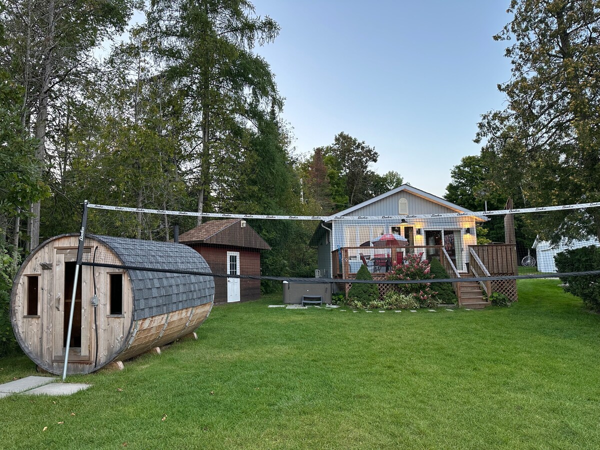Sjednite, opustite se, smijte se i opustite u ovom mirnom, bezbrižnom, elegantnom prostoru prikladnom za kućne ljubimce sa porodicom i prijateljima. Uživajte u sjajnom pogledu na seosku kuću, igrama i još mnogo toga. Popijte svoje omiljeno piće pored hidromasažne kade ili pored ognjišta s pogledom na jezero. Samo skočite u saunu u buretu ili prošetajte lokalnim stazama. Kupujte i večerajte u ukusnom lokalnom restoranu udaljenom 10 minuta ili se odvezite do Midlenda za nešto manje od 20 minuta