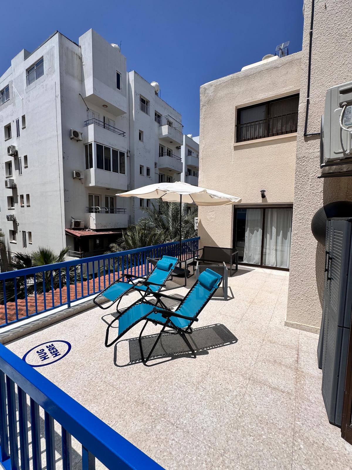 Prostrani trosobni stan na samo 3 minuta vožnje do plaže. Mirna lokacija u blizini autoputa za brzu vožnju do Larnake ili Aja Nape. Dva balkona, uključujući veliku terasu za sunčanje i roštilj. Potpuno klimatizovan, sa dva stola i monitorom - savršen za rad na daljinu. Zajednički bazen, društvene igre, lift i dva privatna parking mjesta ispod zgrade. Idealno za porodice, parove ili radne praznike.