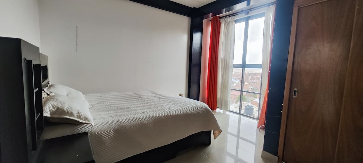 Prostrana okruženja i udobne spavaće sobe, udoban i opremljen TV i grijanje u dnevnoj sobi, potpuno kuhinja, dva kupatila i glavno kupatilo sa kadom/tušem sa toplom vodom 24 sata. Zgrada se nalazi nekoliko blokova od Campero i Bolívar Central Markets, bolnice Cristo Rey, Multicines PLAZA i Glavni trg