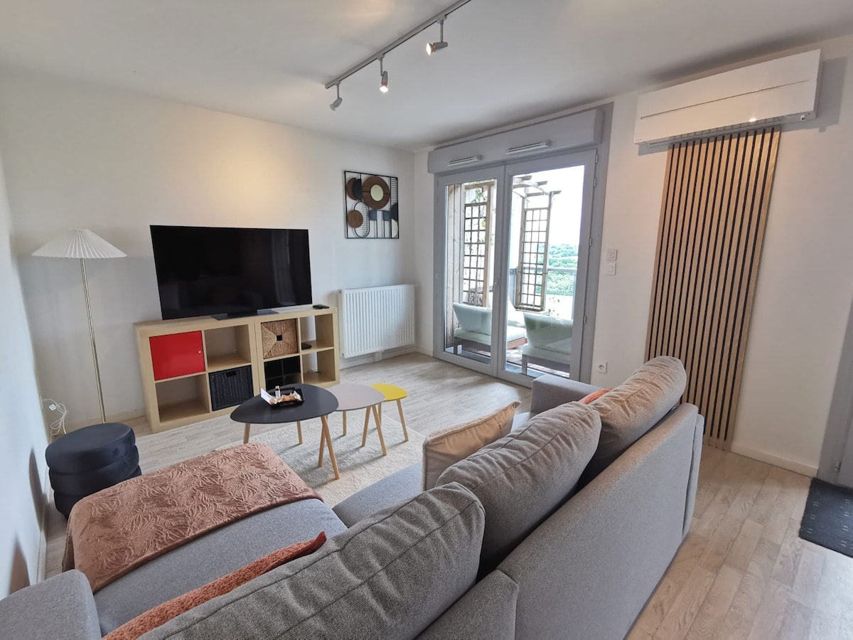 Ravis de vous accueillir dans ce nouvel appartement très ensoleillé avec une entrée indépendante, 2 chambres, dont un lit de 160 et 2 lits de 90, lits faits à votre arrivée, une salle d'eau, serviettes fournies, toilette séparé, une grande pièce de vie avec cuisine équipée comprenant lave vaisselle, hotte, plaque induction, frigidaire, micro onde, télévision et wifi, lave linge dans l entrée, 2 places de parking. Commerces et restaurants à 900m (boulangerie Grand Frais etc)