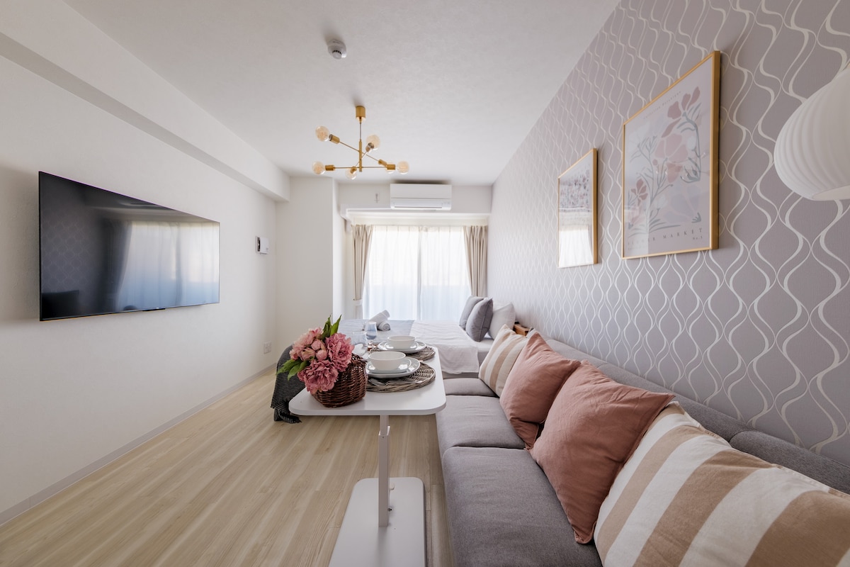 Ovo je apartman za odmor od 41 m², 1LDK, koji je u potpunosti dizajnirao koordinator enterijera. U istoj zgradi postoji više jedinica. Udaljeno je 7 minuta hoda od stanice metroa Nankai i Osaka Tengačaja. Odatle su samo 2 stanice (5 minuta) linijom Nankai do stanice Namba i direktna vožnja od 35 minuta do međunarodnog aerodroma Kansai bez presedanja. ◆Karakteristike: Sistem za samostalnu prijavu bez stresa Podrška na japanskom, engleskom i kineskom jeziku Dostupan je brzi Wi-Fi