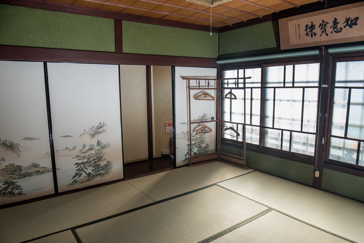 19 minuta vozom i pješke od stanice Hirošima!Iznajmljujemo cijelu mirnu kuću za jednu porodicu sa ogromnom japanskom baštom starim 200 godina i autentičnim sobama u japanskom stilu.Postoji besplatna japanska usluga oblačenja kimona za one koji to žele, a možete i da doživite tradicionalnu japansku ceremoniju čaja u kimonu.Bašta ima cvjetove trešnje i prelijepa je od kraja marta do početka aprila.Azaleje su u punom cvatu početkom maja.Velika dnevna soba ima pogled na baštu. Blizu je stanice AkiNakano, koja je 13 minuta udaljena od linije JR Sanjo do stanice Hirošima.Potrebno je 6 minuta hoda od stanice Aki Nakano.Budući da je u blizini stanice JR, lako je doći do Parka mira, a do Mijajime ima 45 minuta direktnim JR-om.Nalazi se na pola puta između aerodroma Hirošima i stanice Hirošima, tako da ako siđete na JR sa aerodroma, možete da ostavite prtljag i odete u razgledanje Hirošime.Odavde možete da posjetite Kure, Okunoshima, Onomiči, Kurashiki i Tsunoura.Tu je i besplatan parking. Domaćin će biti u sporednoj kući.Tu smo da vam pomognemo oko dodavanja potrepština i kupovine.Za minut hoda nalazi se prodavnica Loson. Ovo je prostrano mjesto za opuštanje cijele porodice.Tu je i mnoštvo igračaka za djecu, tako da možete da ostanete bez dosade.Opustite se sa porodicom i prijateljima. * Zbog blizine prirode, insekti se pojavljuju napolju od proljeća do jeseni.Ako ne volite insekte, suzdržite se od toga.
