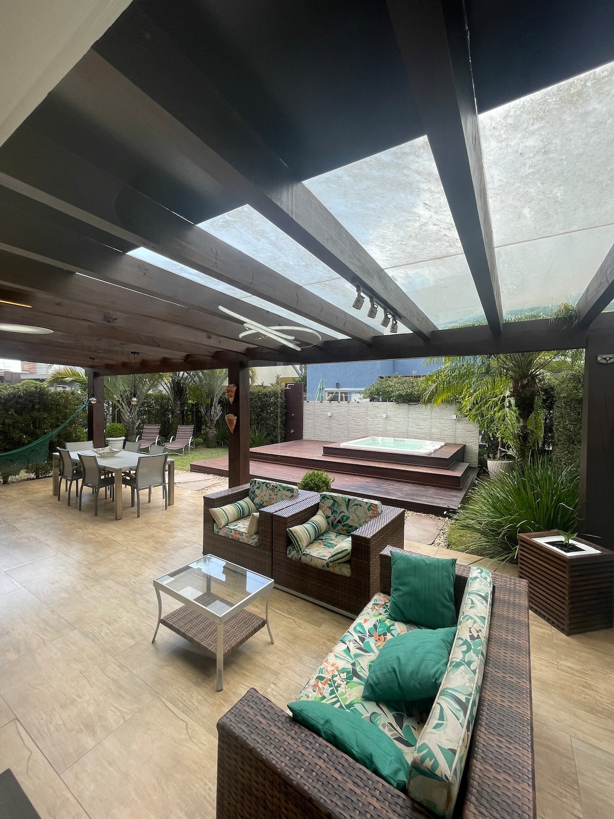 Nalazi se u kondominijumu sa samo 3 kuće, ali sa svim 100% privatnim sadržajima, što garantuje udobnost i ekskluzivnost. 👥 7 osoba 🛁 Hidromasažna kada/spa 🛌 1 apartman + 2 spavaće sobe Integrisana 🍳 kuhinja/prostor za gurmane 🥩 Dva roštilja, peć za picu i šporet na drva 📺 SmartTV 📶 Wi-Fi ❄️ A/C 👕 Mašina za pranje veša Ekskluzivno 🌿 unutrašnje dvorište Privatni 🔥 šporet 🐾 Područje pretrage 🚗 Garaža 📹 Kamere dostupne non-stop Prikladno 🐶 za kućne ljubimce (dodatni trošak od 100 $) ⚡ 220V