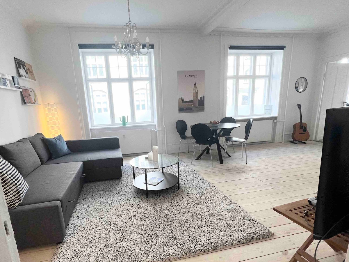 Ovaj udoban stari stan iz 1798. godine nalazi se usred starog grada Kopenhagena, gde se nalazi većina kafića i turističkih atrakcija, glavna ulica za kupovinu, parlament, Novi Habur, Nacionalni muzej, Kristijanija itd. Stan se nalazi u mirnoj ulici i sve zavjese su crne, tako da ćete se lijepo naspavati uprkos centralnoj lokaciji i svijetlim skandinavskim noćima.