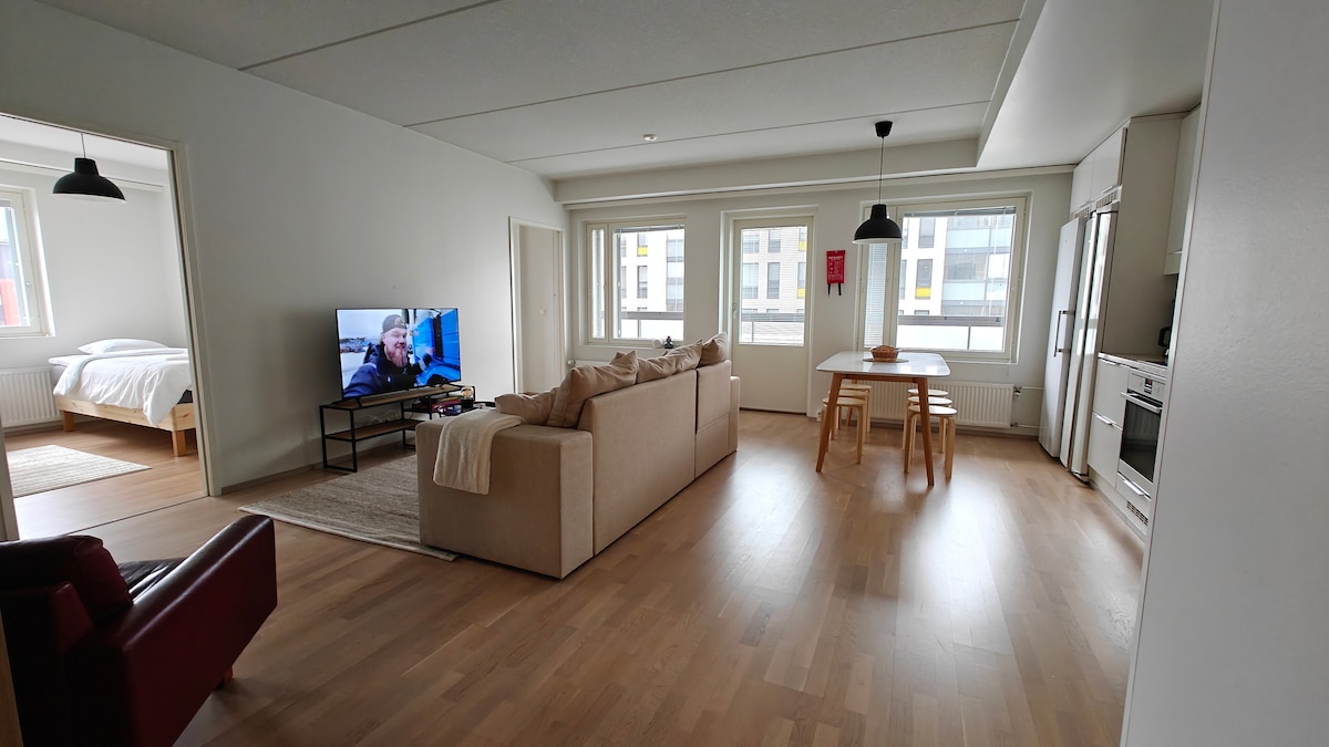 Dobro došli u dragulj grada Oulu! 💎 Ovaj svetli, moderni stan od 35 m² dostupan je za najviše 4 gosta. ✨ Nudi najređu pogodnost u centru grada: BESPLATAN, bezbedan garažni parking + plaćeno punjenje električnih vozila. Nalazite se na nekoliko koraka od prelepog parka Hupisaaret i blizu svih usluga u centru grada, što ga čini savršenim i za posao i za slobodno vreme. Ima potpuno opremljenu kuhinju (sa čajem, kafom!), mašinu za pranje veša u jedinici i osvežavajući francuski balkon. Za vašu udobnost, posteljina i peškiri su uključeni.