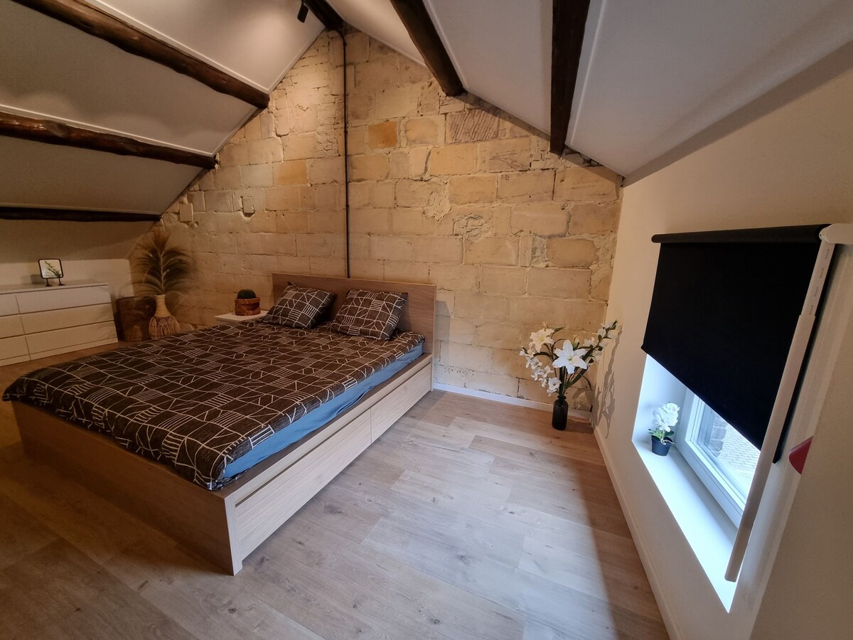 "La Grange du Moulin de Tultay" has been renovated in to a loft. Combining authenticity with modern comfort it invites you for a unique and ecologically responsible experience (natural materials, low energy consumption). Just suit yourselves: intimate chilling at the wood stove, or rather active w/ brisk walks, cycling or otherwise discovering our Ardennes. All commodities within walking distance (< 1,5 km) including the Ravel cycling network. Swimming in the lake in agreement with the owner.