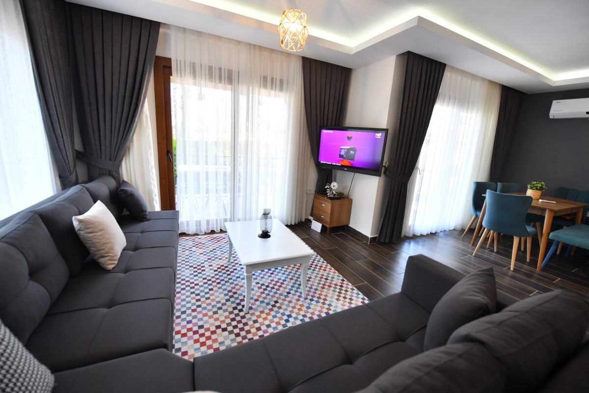 Možete da se opustite kao porodica u ovom mirnom smještaju. Blizu je atrakcija kao što je Ölüdeniz Babadağ. Nalazi se na pješačkoj udaljenosti od mjesta kao što su prodavnica, zdravstveni centar, džamija. Takođe je pogodan za zimske praznike sa opcijama kao što su podno grijanje i unutrašnji bazen. Okruženi baštom i zgradom ne mogu se vidjeti s drugih mjesta. Ovdje ćete pronaći mir i luksuz koji tražite. Garantujemo vam nezaboravan odmor. (Topli bazen je za zimsku sezonu)