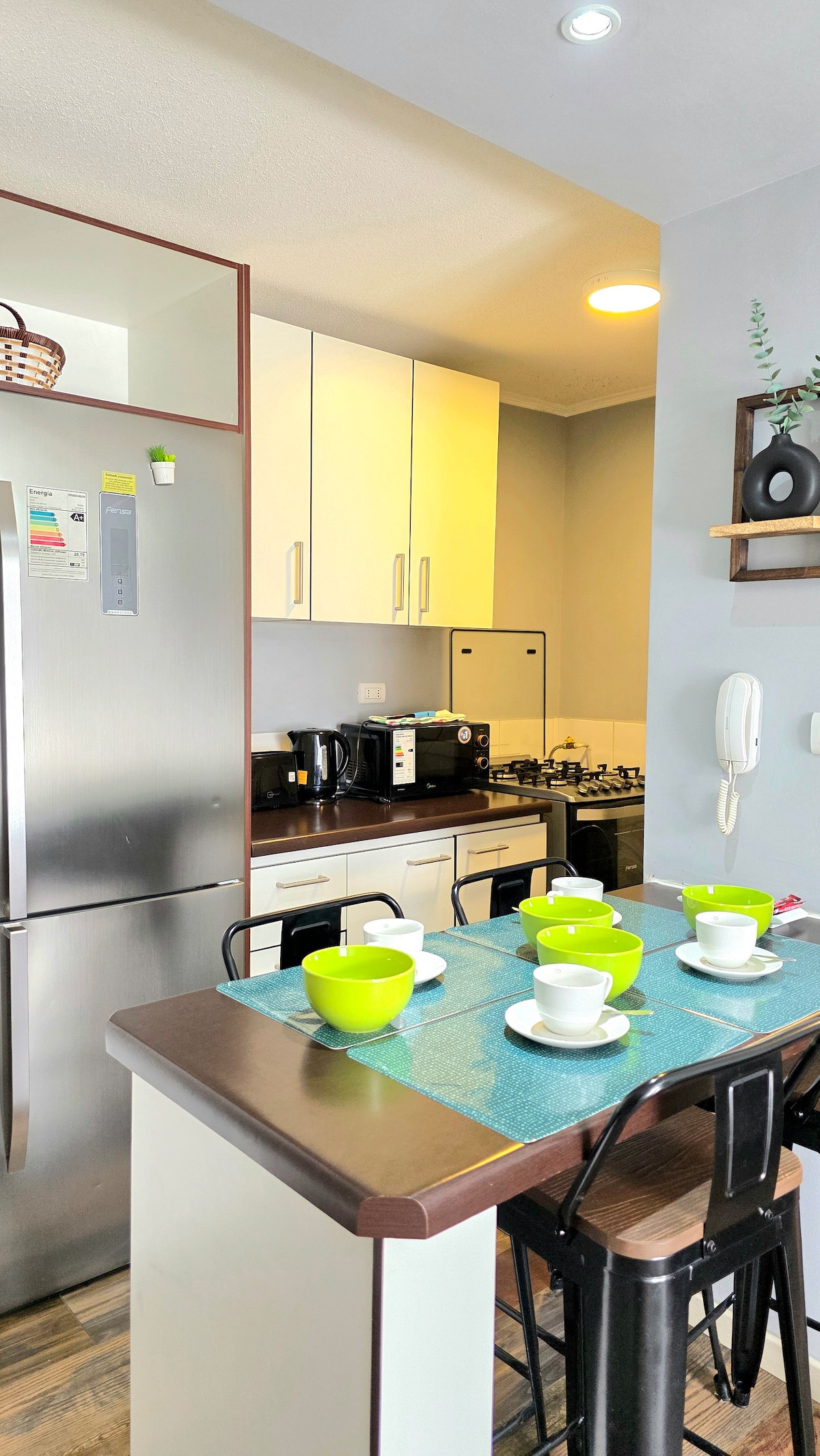 Disfruta de una estadía cómoda y conveniente en frente al Mall Open Plaza Ovalle, nuestro departamento cuenta con 3 habitaciones(4 camas) para 5 huéspedes y un futon grande y cómodo para 1 persona adicional. Totalmente amoblado, decorado y equipado, cocina americana. Cruzando la calle encuentras supermercados, patio de comidas, restaurantes, cine y otras tiendas. Cuidamos cada detalle con dedicación, estilo y comodidad. Visítanos. Te esperamos ✨